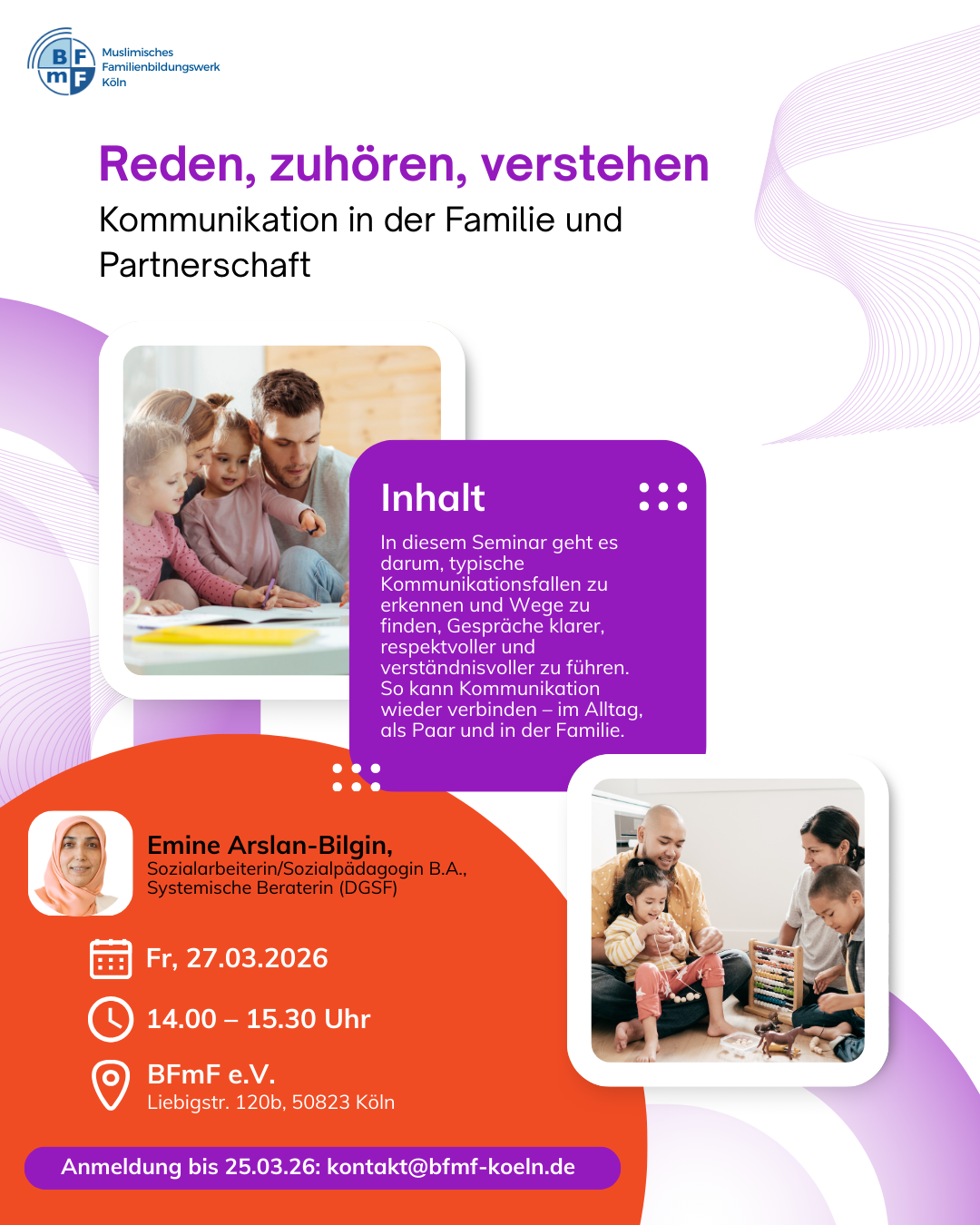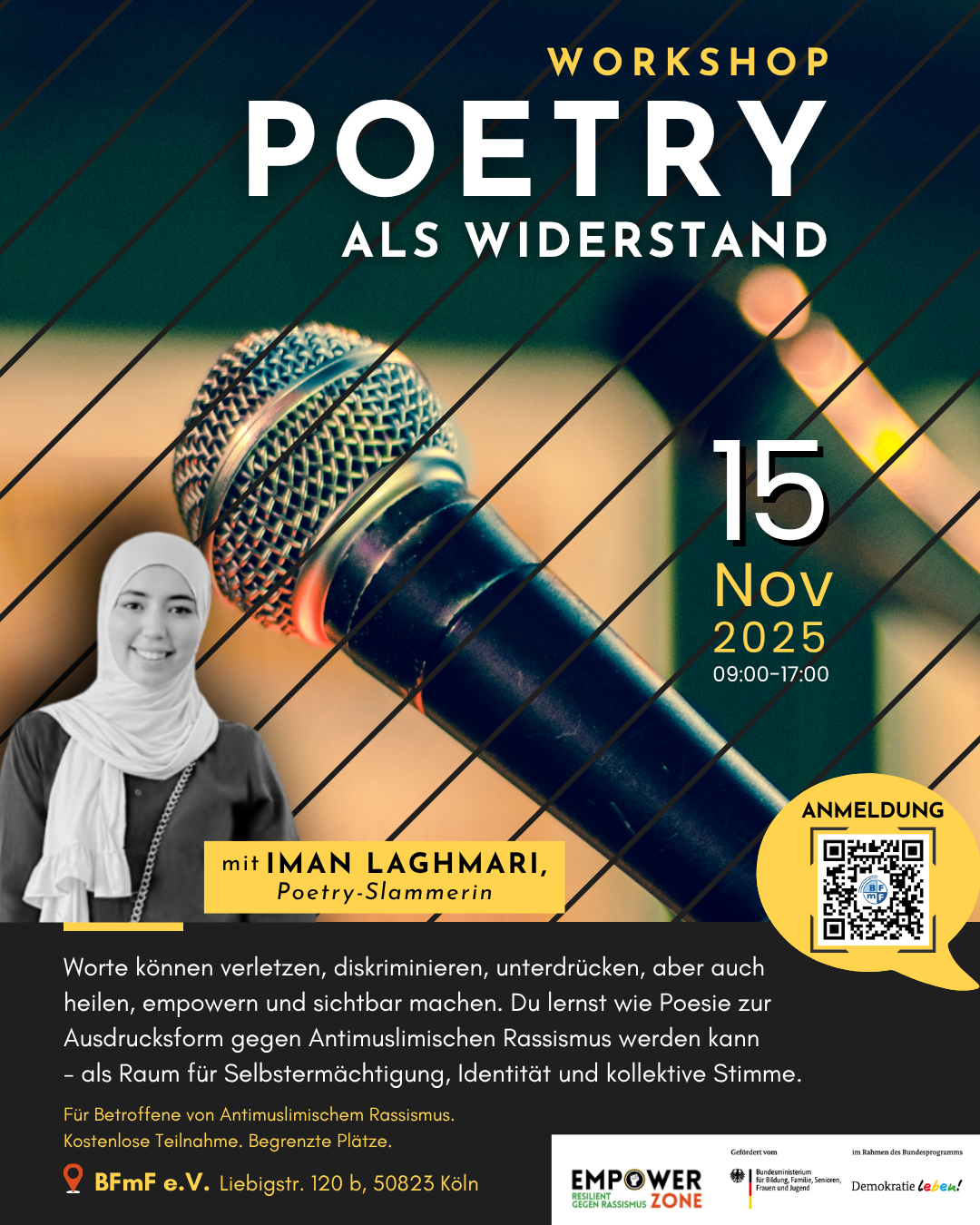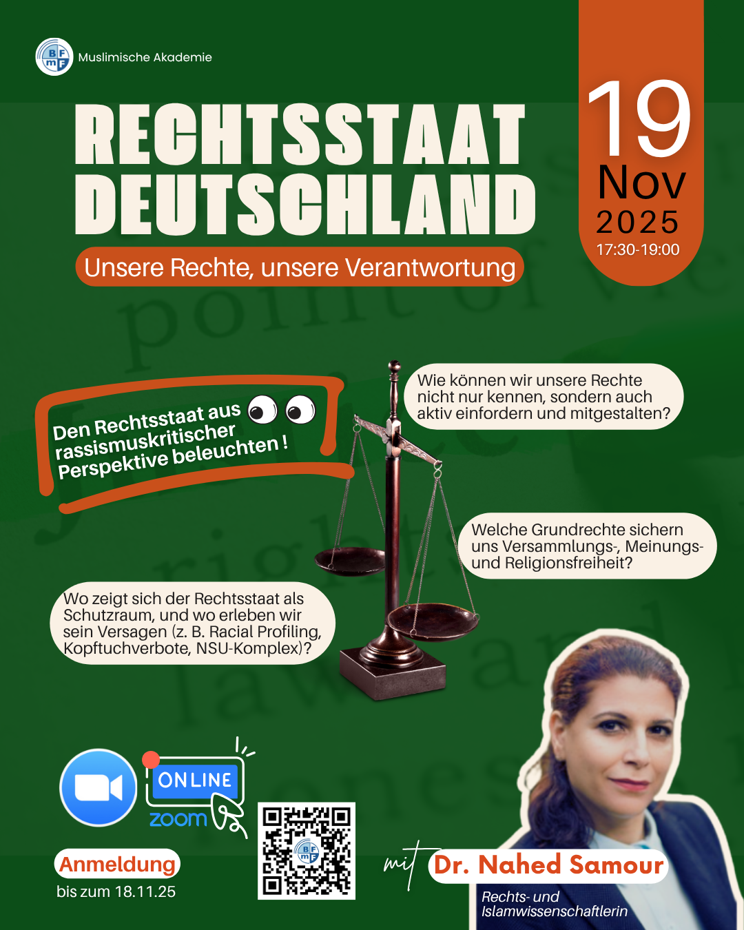 Die „Muslimische Akademie“ bietet eine Plattform für Bildungs- und Begegnungsangebote zu verschiedenen Themen wie Kulturelles, (Inter-)Religiöses, Sprache, Empowerment u.a. an und richtet sich an alle interessierten Muslim*innen und Nichtmuslim*innen sowie Menschen allen Alters. Für den fachlichen Austausch bietet die Akademie Student*innen und Akademiker*innen Fachtagungen sowie Multiplikator*innen-Workshops an.